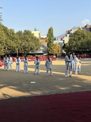 Today following a fabulous Dream Cricket morning, we had a “rock stars” welcome at the Advance Academy. We were all presented with a Nepalese flag and a Token of Love from the school. Then entertained by the Tao Kwon Doh students and a dance group.