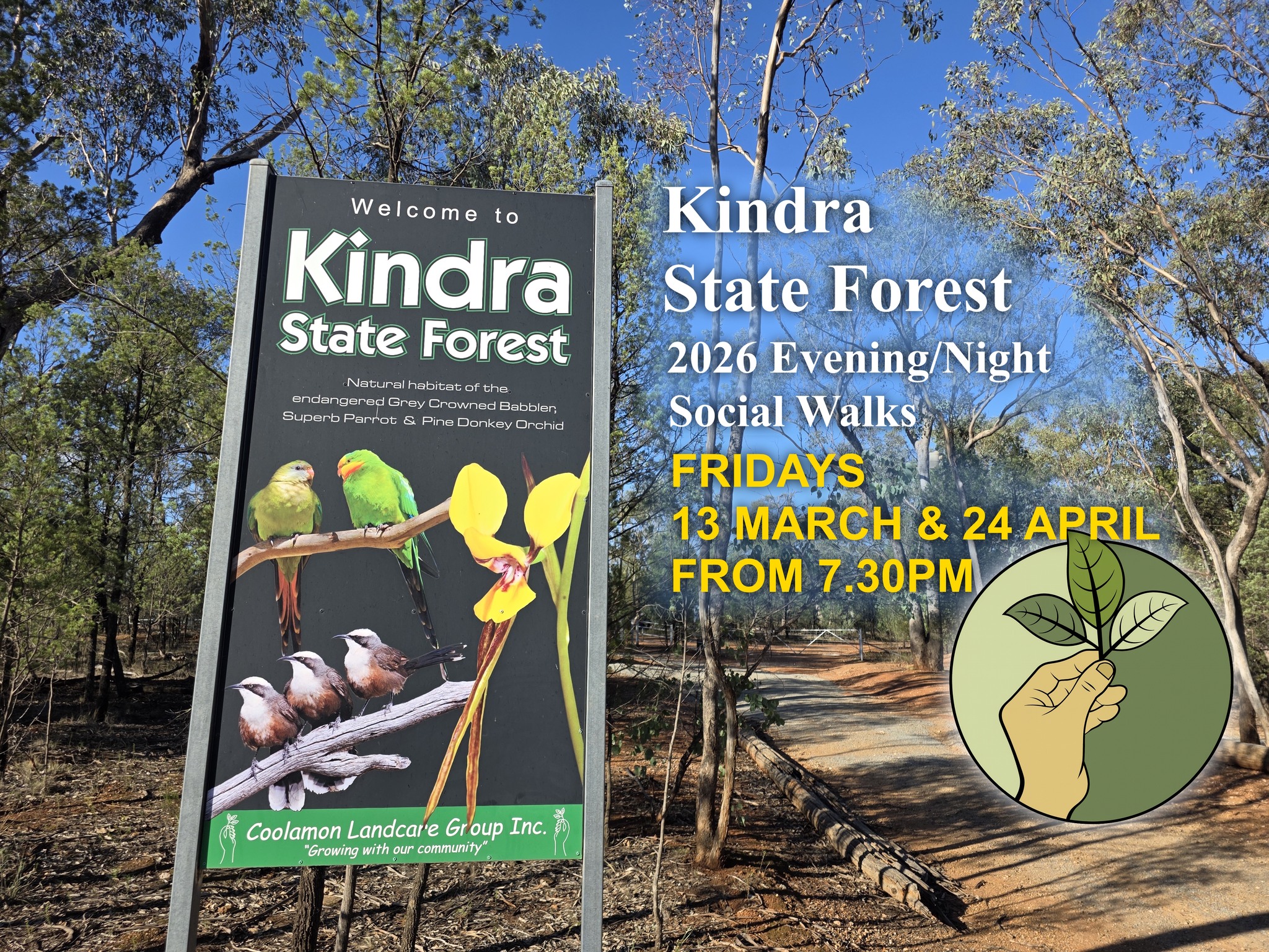 For this walk, we’ll meet at the main entrance to Kindra State Forest on Lewis Street at 7.30PM.